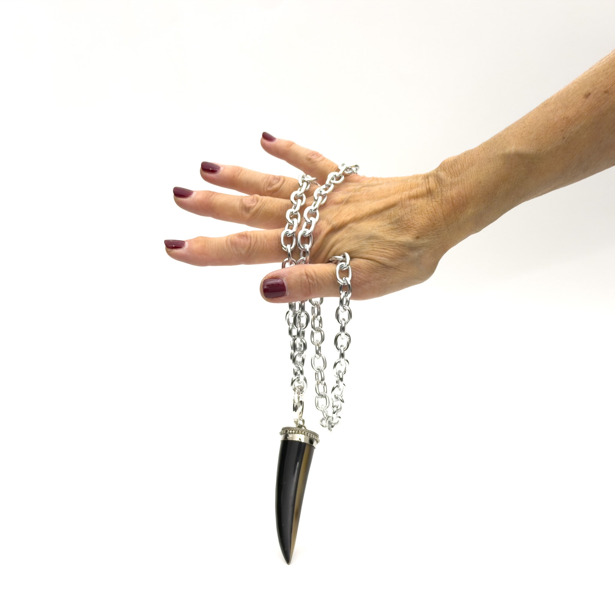 MATERIAL: Buffalo horn, silver metal chain and silver metal ring
