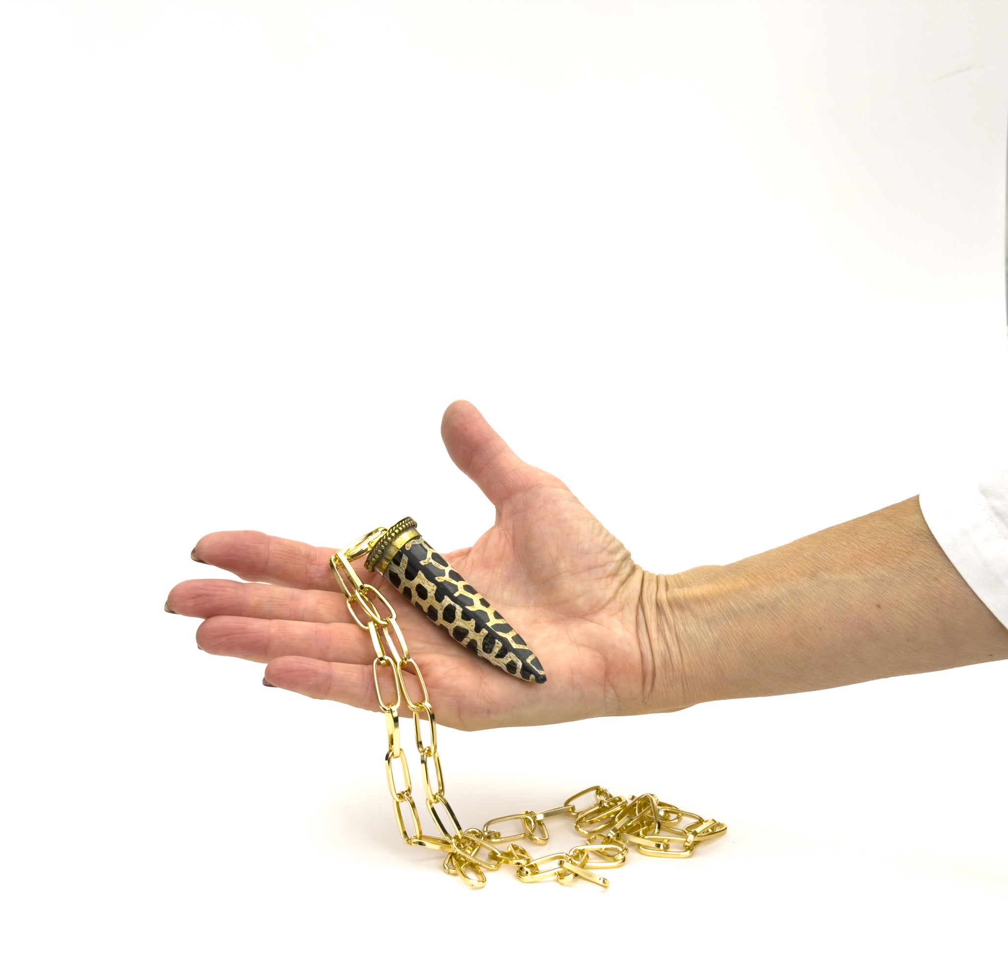 MATERIAL: Wooden horn, gold metal chain and gold metal ring