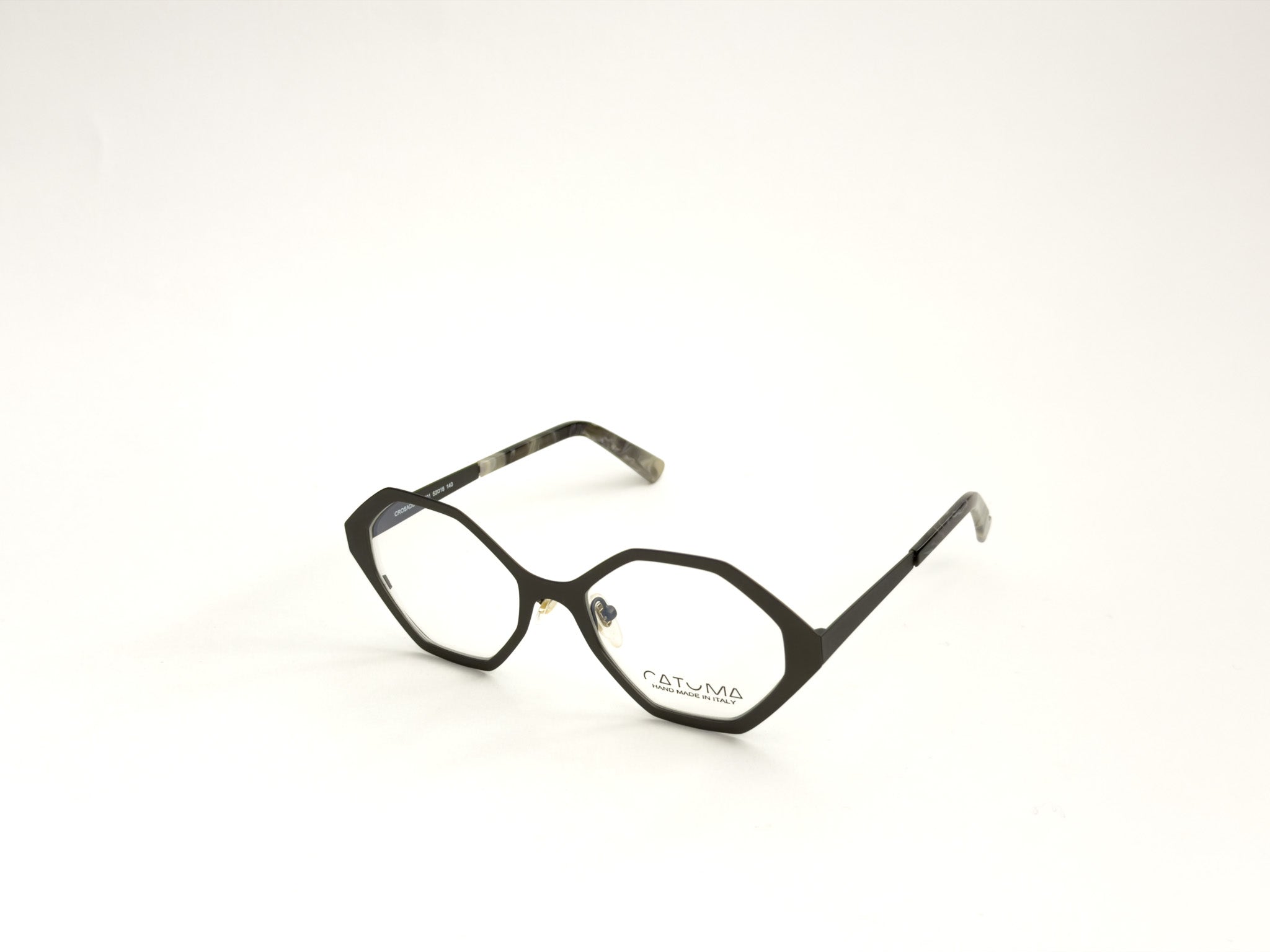 DESCRIPTION: Catuma frames are born from the encounter between natural materials and artisanal art. Stone, wood, carbon fiber, and steel blend in a perfect balance of contrasts and harmonies, giving life to frames that feel like small wearable works of art. Each pair of glasses is handcrafted with meticulous care, where every detail speaks of a passion for excellence. The result is a unique accessory, with a bold and refined character, that celebrates the beauty of natural imperfection and the magic of true Italian craftsmanship.