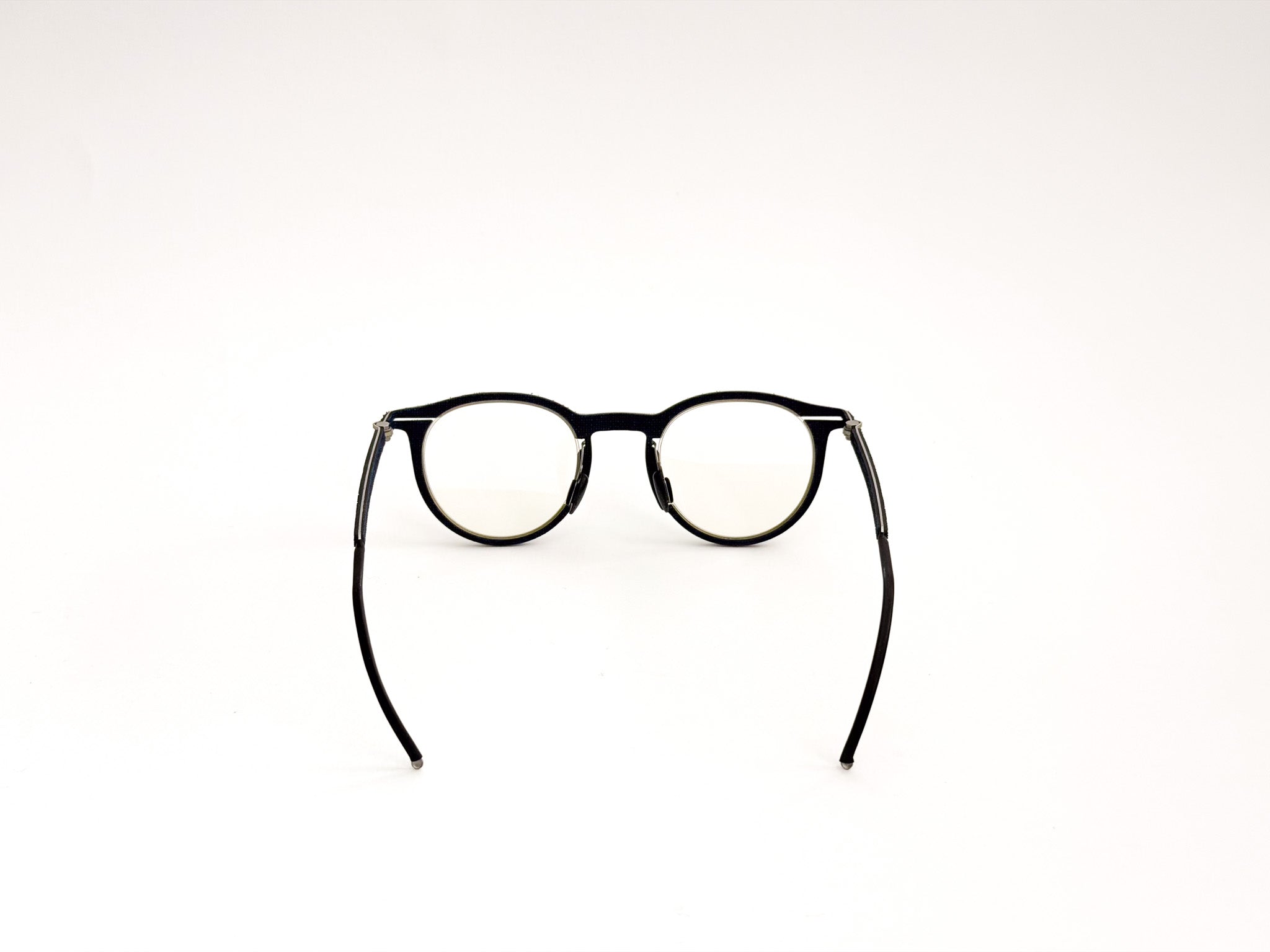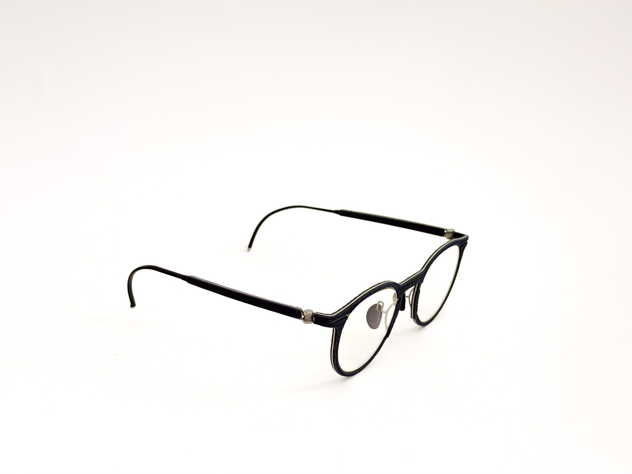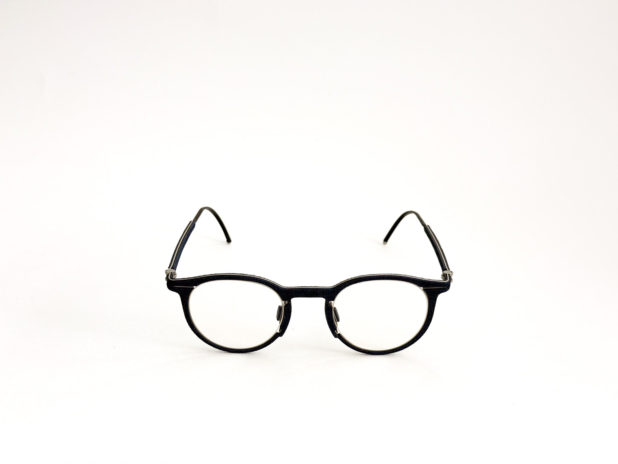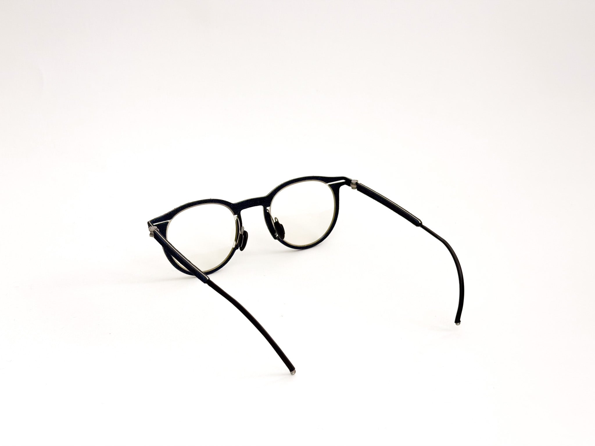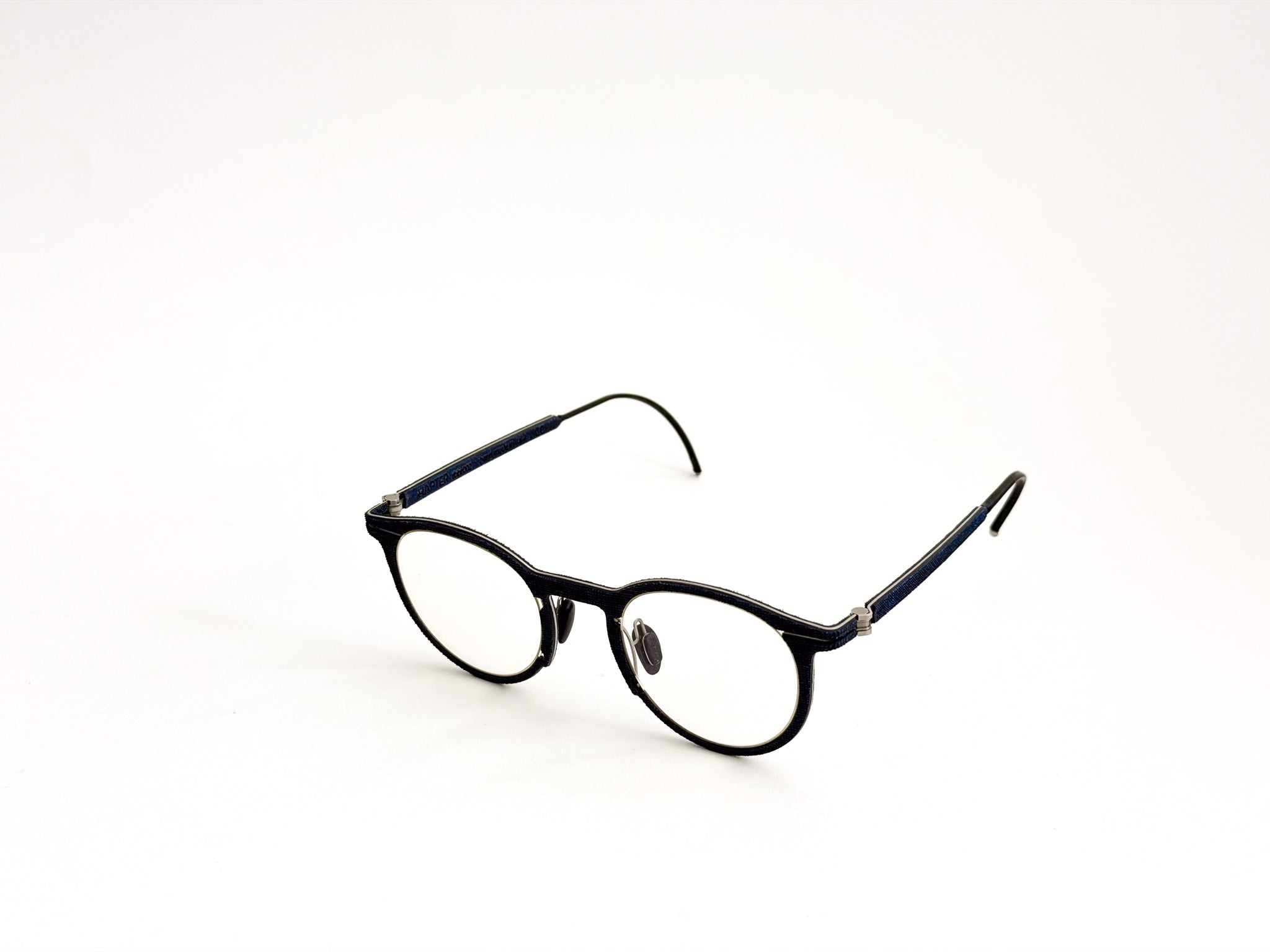 Hapter glasses are born from the fusion of precision engineering and contemporary craftsmanship. Each frame is milled from a single block of surgical stainless steel, without screws or hinges, to ensure maximum strength, lightness, and a clean, unmistakable design. This ultra-technical structure is woven with fine fabrics, such as wool and cotton from historic Italian wool mills (e.g., Cerruti 1881), and industrial organic rubber, molded and pigmented by hand to create unique textures. The result is a pair of glasses with an authentic and sophisticated character, where every detail is carefully considered, crafted, and finished.