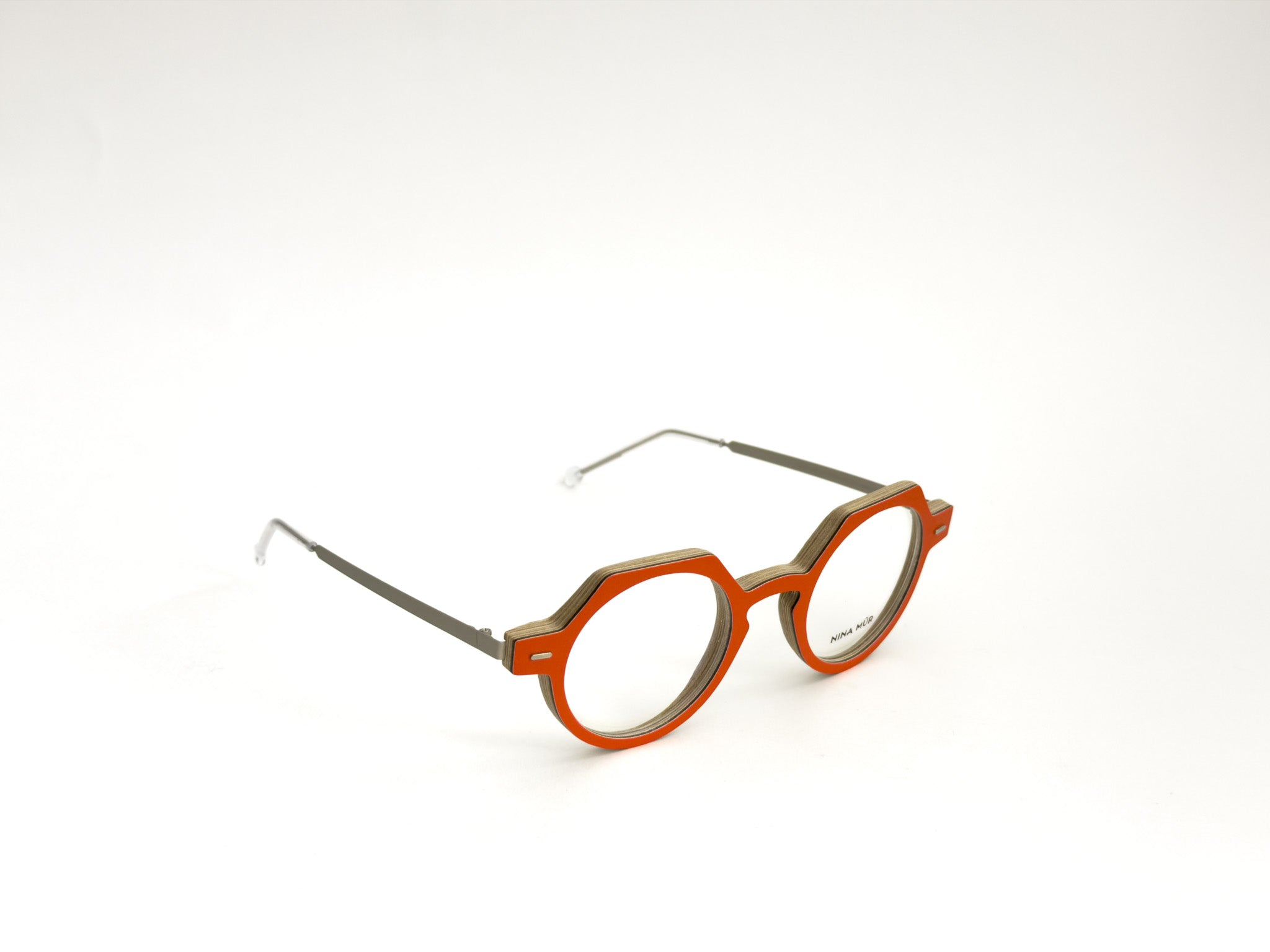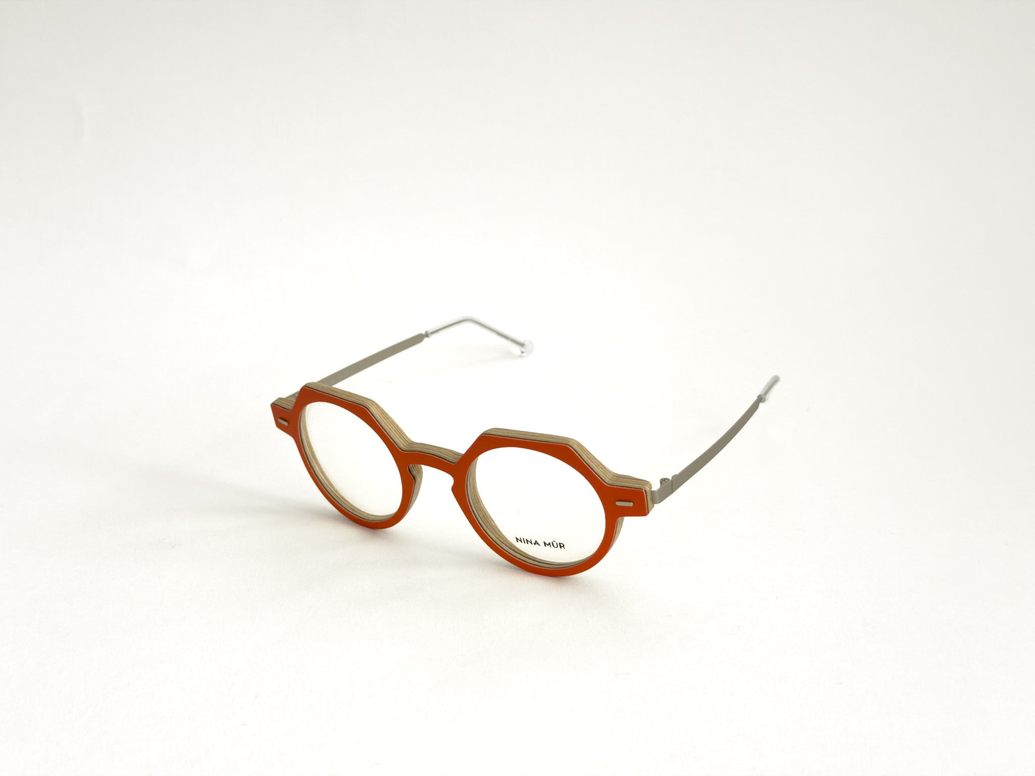 NINA MÛR glasses are a blend of bold design, craftsmanship, and sustainability. Handcrafted in Madrid with layers of FSC-certified Finnish birch wood, they combine lightness, strength, and flexibility. The multilayered structure, precisely shaped and finished with artisanal care, creates unique frames where elegant lines, original volumes, and sophisticated details express personality and a conscious style. A true design object that won't go unnoticed, designed for those who love to stand out with creativity and sophistication.
