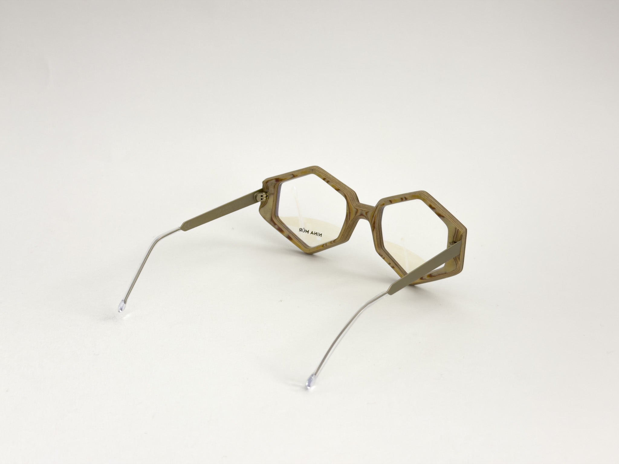 NINA MÛR glasses are a blend of bold design, craftsmanship, and sustainability. Handcrafted in Madrid with layers of FSC-certified Finnish birch wood, they combine lightness, strength, and flexibility. The multilayered structure, precisely shaped and finished with artisanal care, creates unique frames where elegant lines, original volumes, and sophisticated details express personality and a conscious style. A true design object that won't go unnoticed, designed for those who love to stand out with creativity and sophistication.