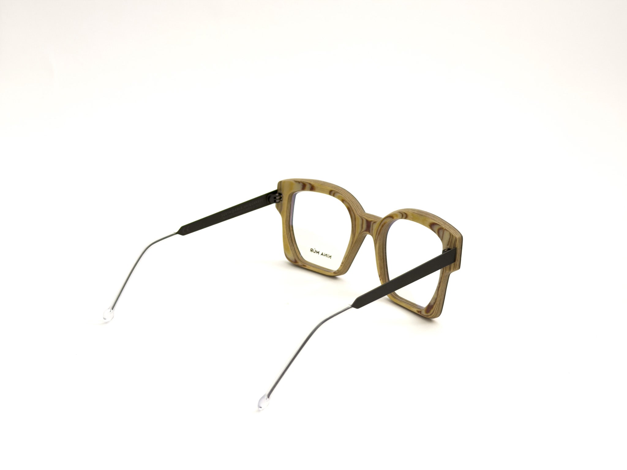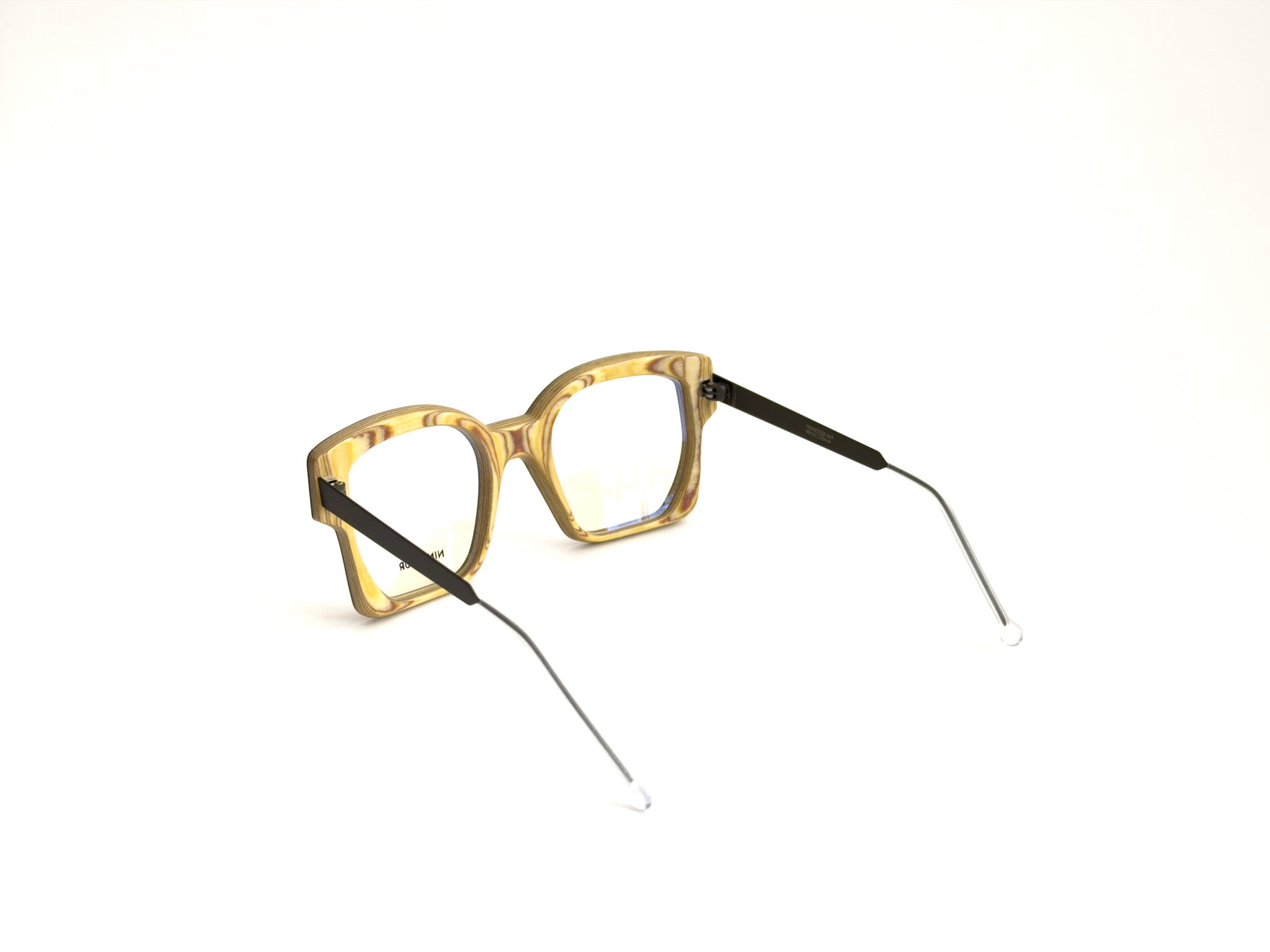 NINA MÛR glasses are a blend of bold design, craftsmanship, and sustainability. Handcrafted in Madrid with layers of FSC-certified Finnish birch wood, they combine lightness, strength, and flexibility. The multilayered structure, precisely shaped and finished with artisanal care, creates unique frames where elegant lines, original volumes, and sophisticated details express personality and a conscious style. A true design object that won't go unnoticed, designed for those who love to stand out with creativity and sophistication.
