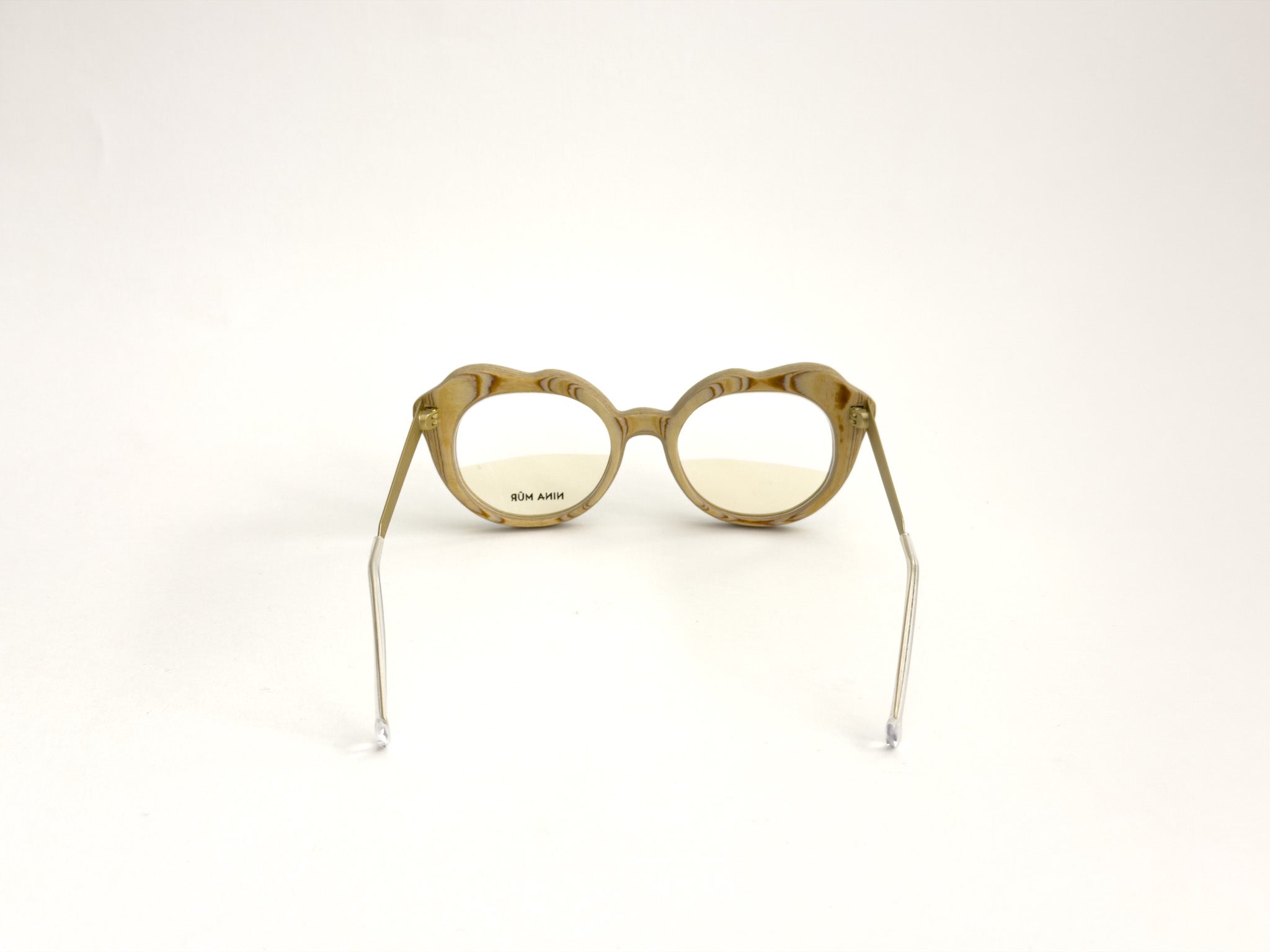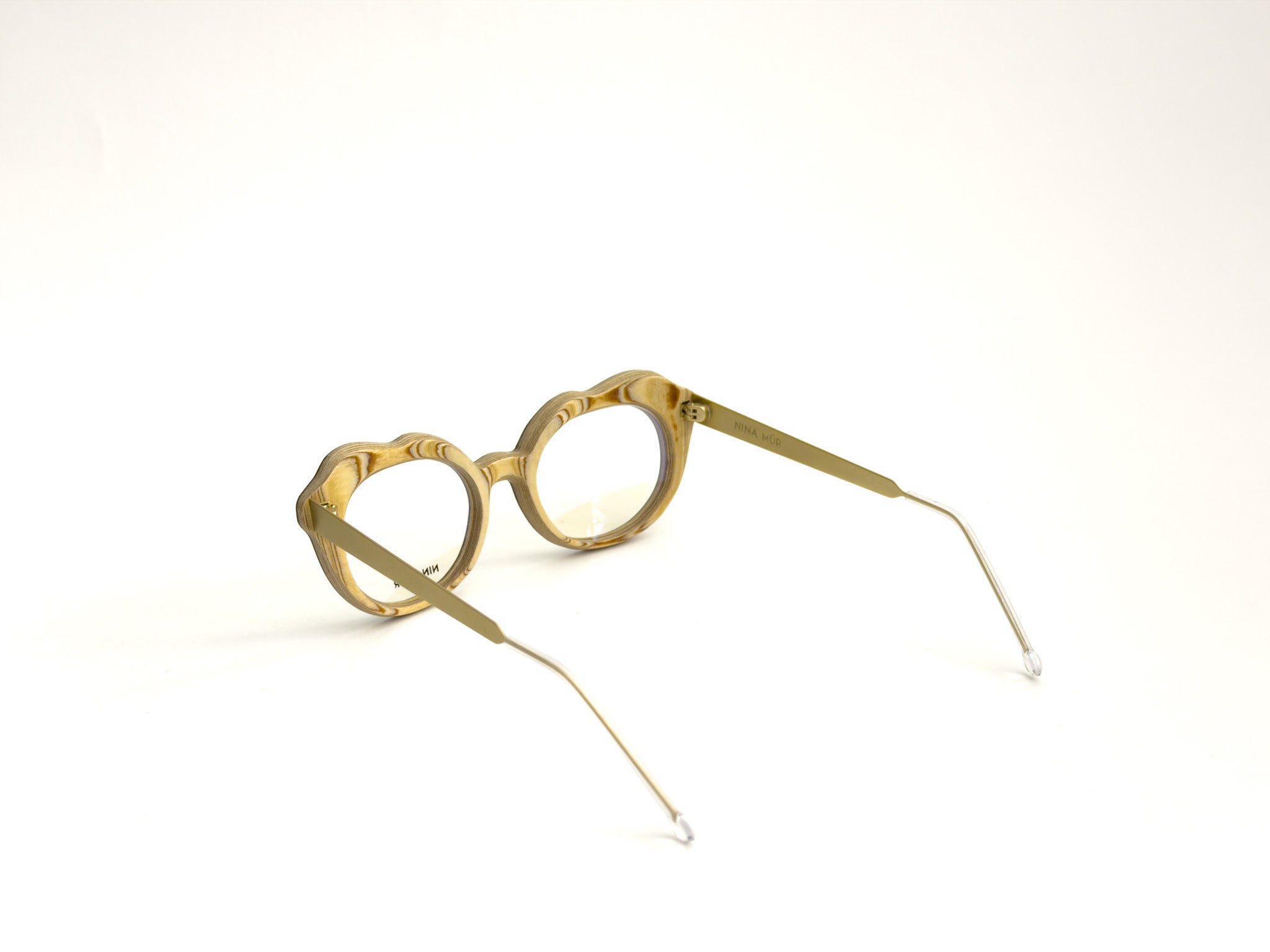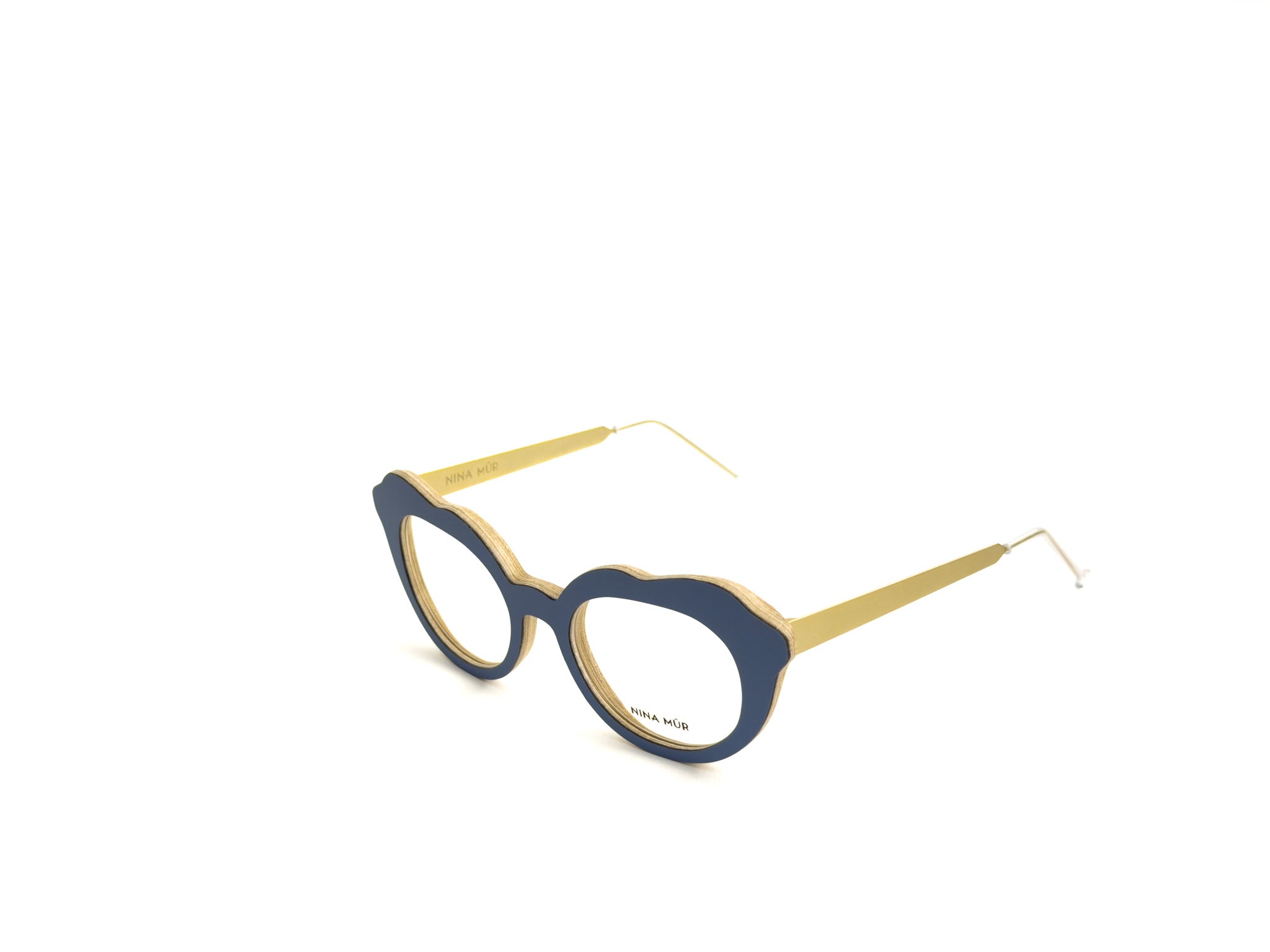 NINA MÛR glasses are a blend of bold design, craftsmanship, and sustainability. Handcrafted in Madrid with layers of FSC-certified Finnish birch wood, they combine lightness, strength, and flexibility. The multilayered structure, precisely shaped and finished with artisanal care, creates unique frames where elegant lines, original volumes, and sophisticated details express personality and a conscious style. A true design object that won't go unnoticed, designed for those who love to stand out with creativity and sophistication.
