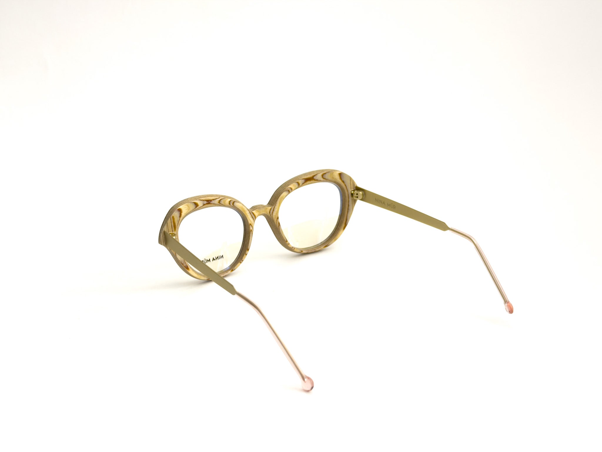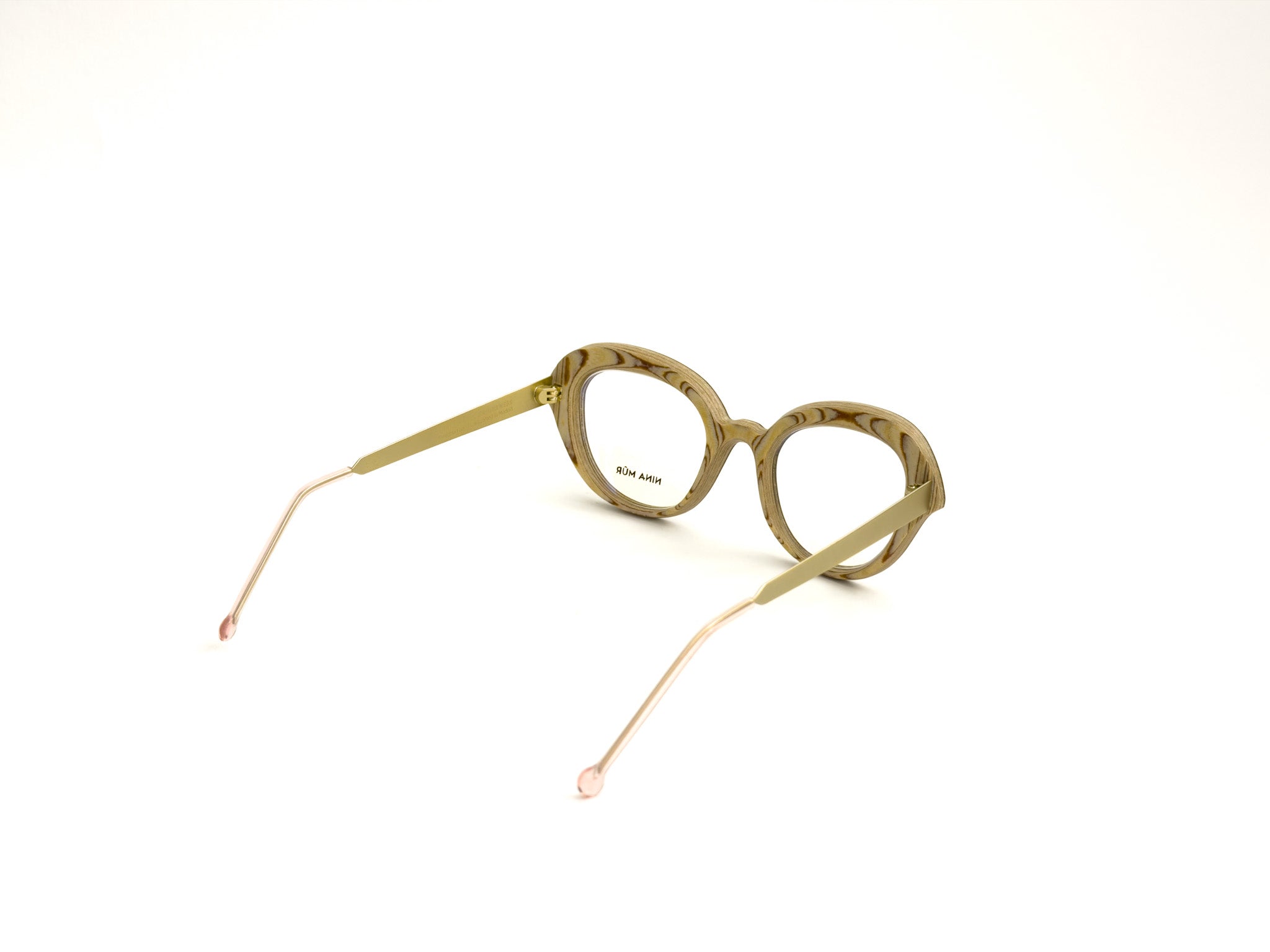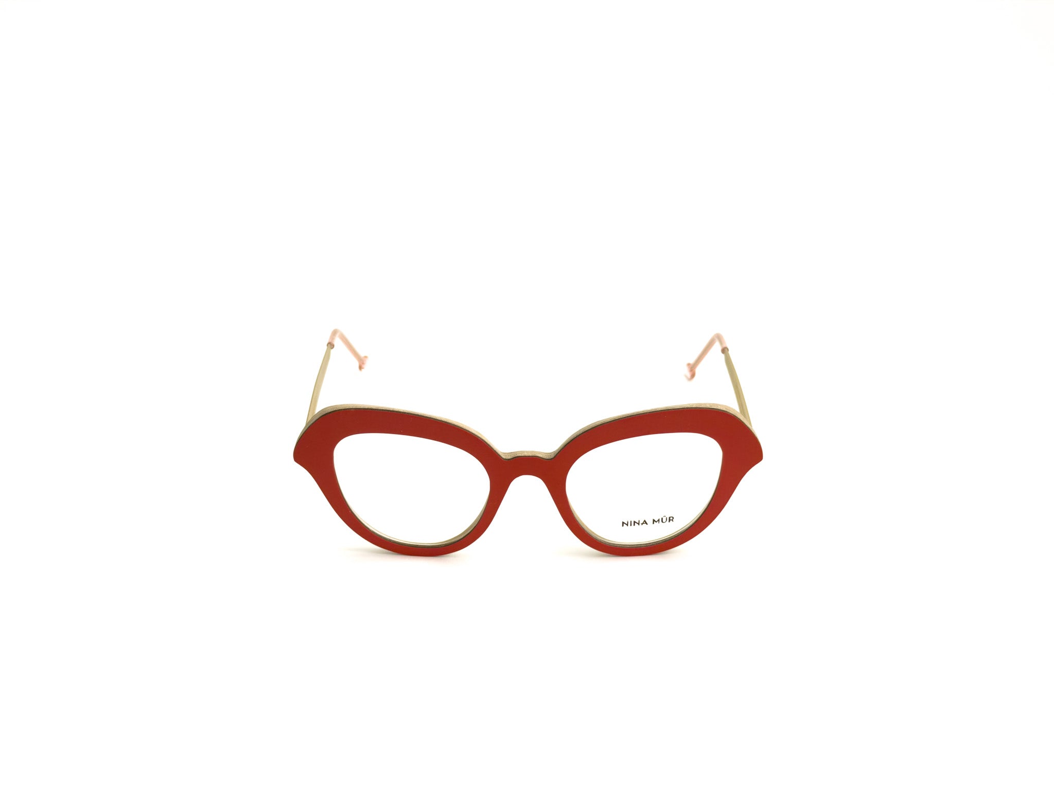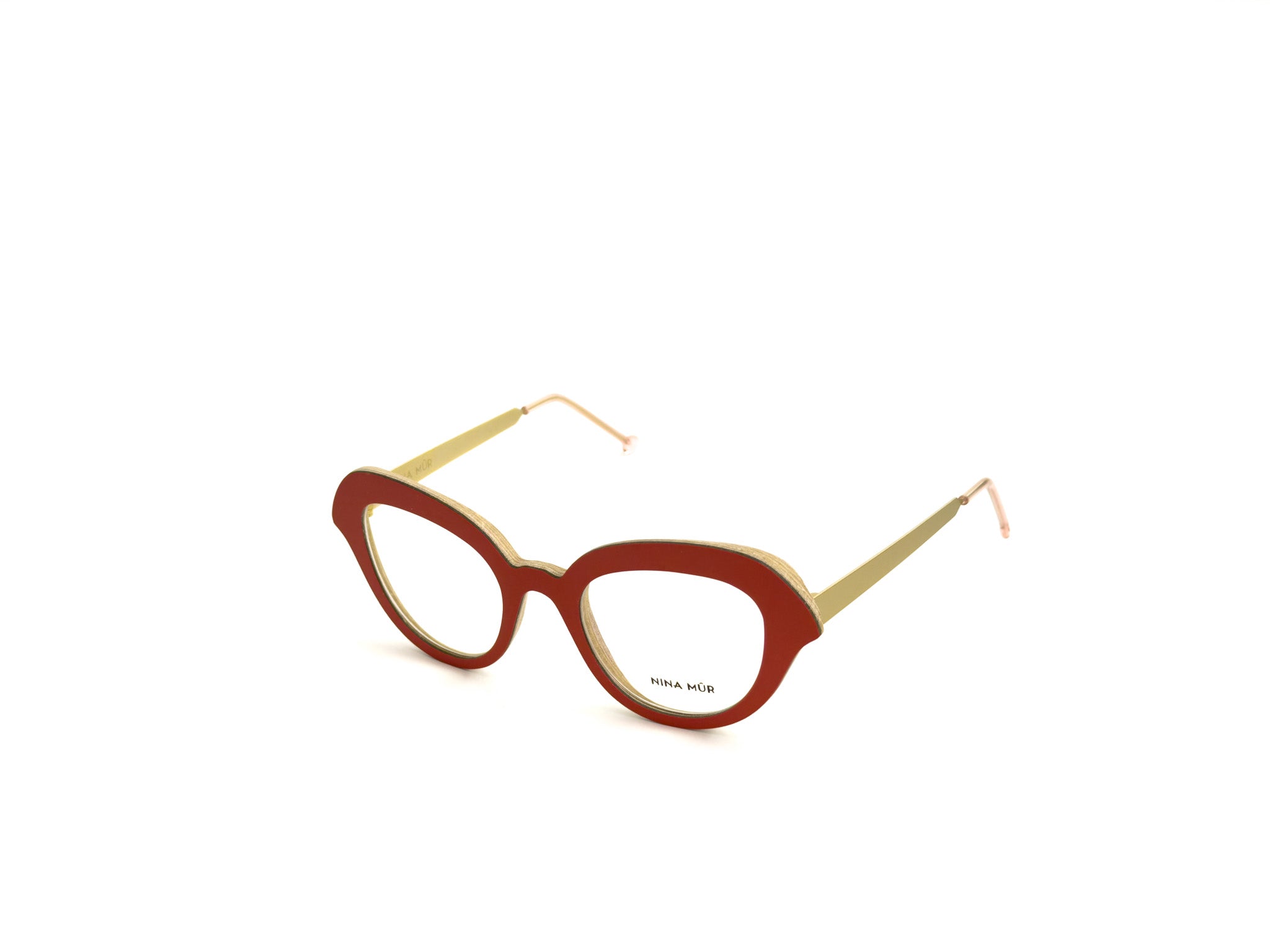 NINA MÛR glasses are a blend of bold design, craftsmanship, and sustainability. Handcrafted in Madrid with layers of FSC-certified Finnish birch wood, they combine lightness, strength, and flexibility. The multilayered structure, precisely shaped and finished with artisanal care, creates unique frames where elegant lines, original volumes, and sophisticated details express personality and a conscious style. A true design object that won't go unnoticed, designed for those who love to stand out with creativity and sophistication.