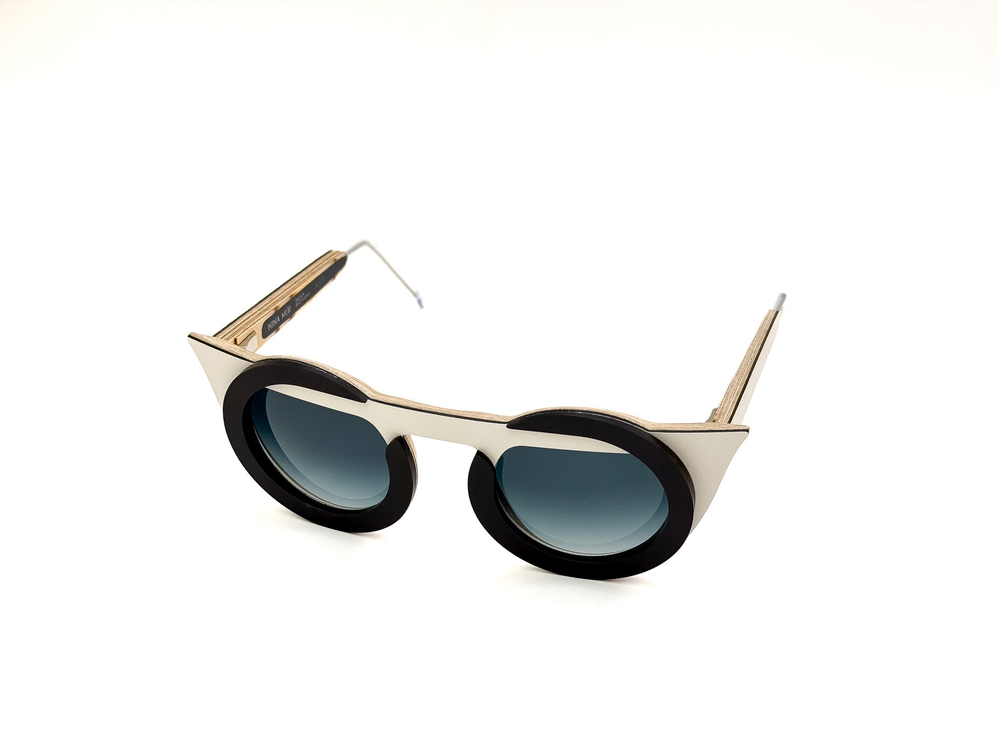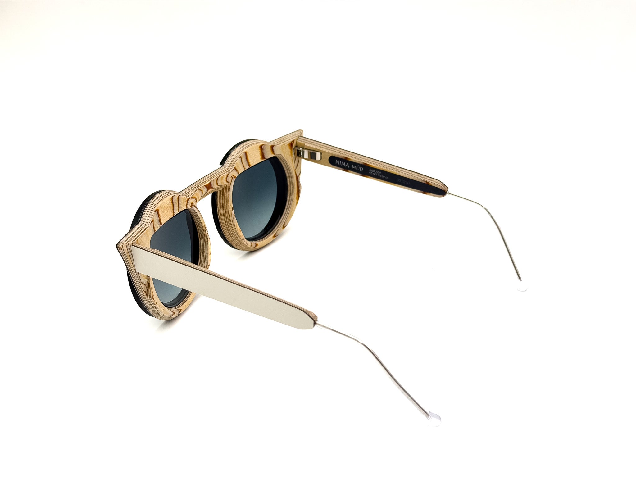 DESCRIPTION: NINA MÛR glasses are a combination of bold design, craftsmanship, and sustainability. Handcrafted in Madrid with layers of FSC-certified Finnish birch wood, they combine lightness, strength, and flexibility. The multilayered structure, precisely shaped and finished with artisanal care, creates unique frames where elegant lines, original volumes, and sophisticated details express personality and a conscious style. A true design object that won't go unnoticed, designed for those who love to stand out with creativity and sophistication.